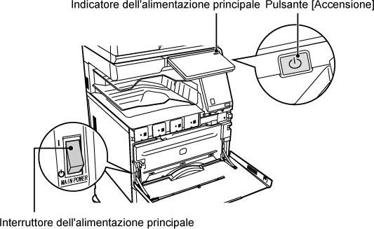 il pulsante [Accensione] e l'interruttore di alimentazione principale