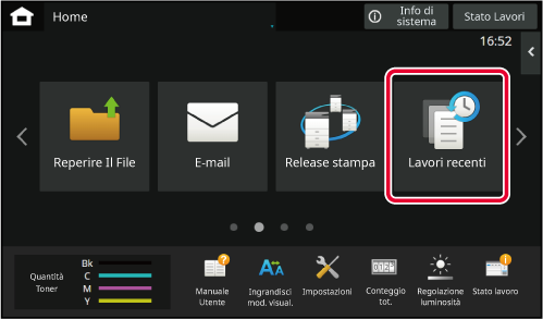 Toccando il tasto [Schermata iniziale] appare la schermata iniziale