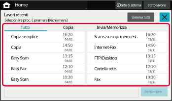 elenco il contenuto dei Fino a 10 lavori più recentemente usati.