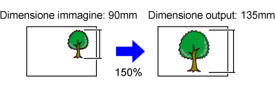 Ad esempio, immettendo 90 mm come formato originale e 135