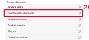 - Selezionare [Caratteristiche stampante] da "Opzioni stampante",