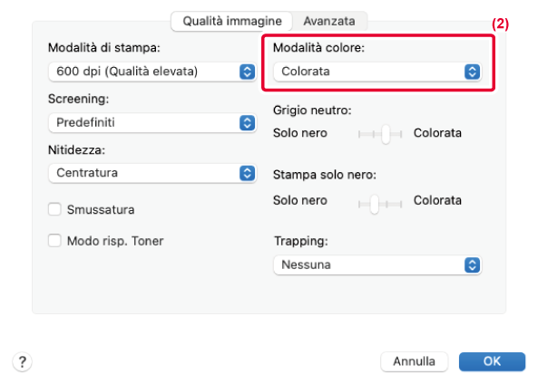 Per "Modalità colore" (insieme di colori usati per la stampa)