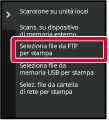 Toccare il tasto [Seleziona file da FTP per stampa] nel pannello operativo.