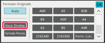 Dopo aver selezionato il tasto del formato dell'originale, toccare il tasto