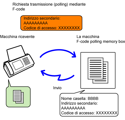 | Casella di memoria polling F-code | Casella confidenziale F-code | Trasmissione broadcast relay F-code | |