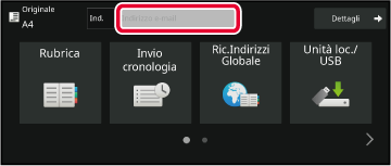 In modalità E-mail, sul pannello operativo viene visualizzato