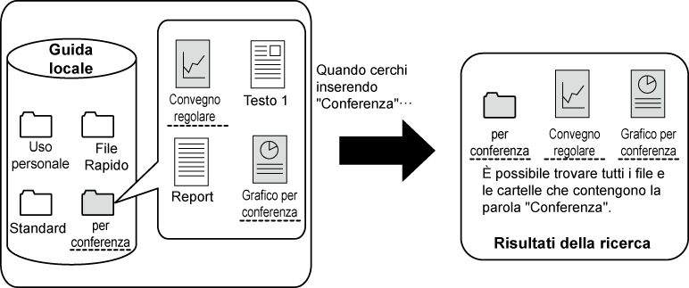 La ricerca può essere eseguita anche se si conosce solo una parte del nome del file o del nome della cartella. Se necessario, è inoltre possibile specificare una cartella come ambito della ricerca.