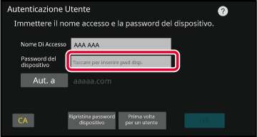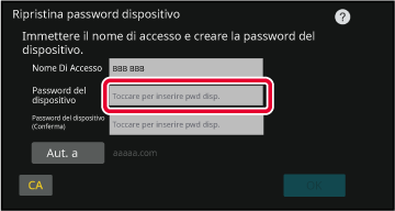 nome di accesso/password del dispositivo, toccare il tasto "Ripristina