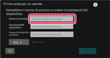 Immissione tramite tastiera virtualeSe la registrazione del nome utente non è stata eseguita