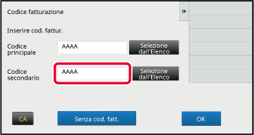 Quando viene visualizzata la finestra di immissione del codice di fatturazione, toccare la casella in [Codice principale], quindi immettere tale codice.