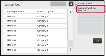 Toccare [Aggiungi/Modifica cod. fatt.] sul pannello operativo.