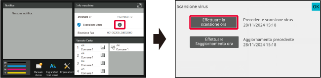 [Eseguire scansione virus ora] in [Impostazione scansione virus] nelle Impostazioni