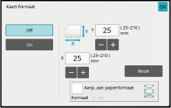 Tik op de toets [On] en geef het juiste origineelformaat op.