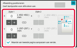 Tik op de getalsweergave die het gebied van de kantlijnverschuiving op de voorzijde of achterzijde aangeeft en voer het gebied in met de cijfertoetsen.