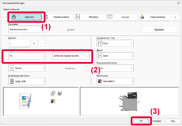 Als 'Origineel Formaat' op het tabblad [Algemeen] is ingesteld