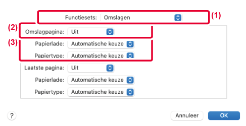 het tabpapier bij 'Uitvoergrootte'.Deze functie drukt bepaalde pagina's op