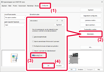 Klik in Windows 10 op de naam van de printerdriver van het apparaat, klik op [Beheren] en klik op [Afdrukvoorkeuren].Een rekeningcode opgeven