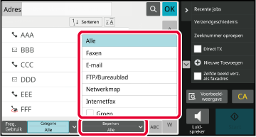 Tik op de toets [Adresboek] in het basisscherm in de