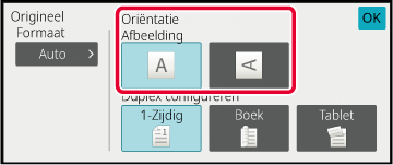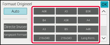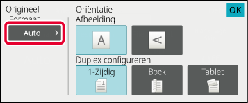 Nadat u de toets van het origineelformaat hebt geselecteerd, tikt u op de toets