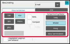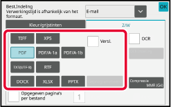 (Op de BP-51C26/BP-51C31/BP-51C36/BP-51C45/BP-51C55/BP-51C65/ BP-56C26 is de OCR-uitbreidingskit vereist.) Tik op de toets [Compressiemodus] of [Comprimeringsfactor].