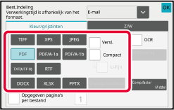 *1 Als PDF (inclusief versleuteling en hoge compressie) is geselecteerd voor de bestandsindeling, kan de bestandsgrootte verkleind worden met flate-compressie.