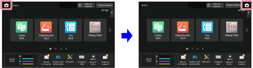 Innstillingene lagres i maskinen og tas i bruk.Du kan endre posisjonen for [Hovedskjerm]-tasten.