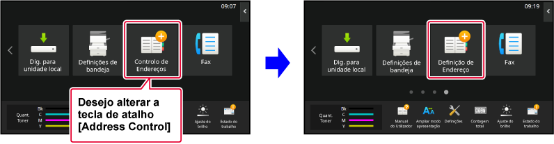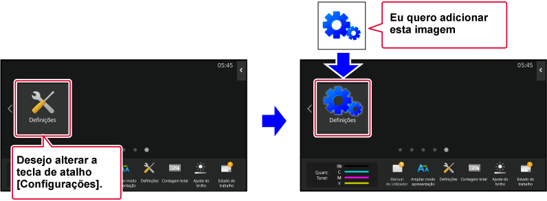 Innstillingene lagres i maskinen og tas i bruk.Hvis du vil endre bildet for en snarveistast