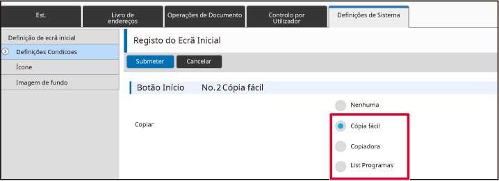 Når du klikker på [Send]-knappen, lukkes [Registrering av startkjerm]-skjermen.Når du er ferdig med å konfigurere innstillingene, klikker du på [Send]-knappen.