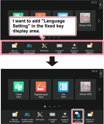 Innstillingene lagres i maskinen og tas i bruk.Du kan endre de faste tastene. De faste