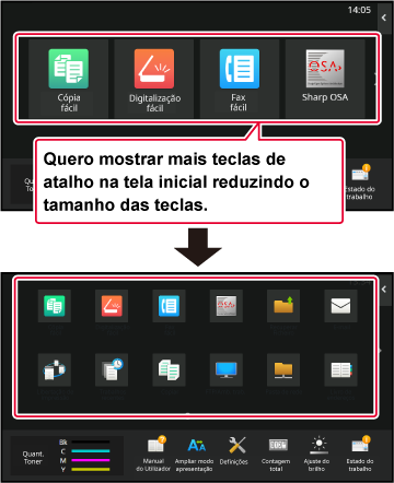Innstillingene lagres i maskinen og tas i bruk.Du kan endre gjennomsiktigheten for snarveistastene.