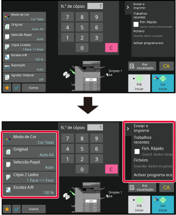 Innstillingene lagres i maskinen og tas i bruk.På skjermbilder i normal modus, som for