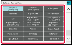 Trykk på [Papirtype]-tasten, trykk på tasten for å angi papirtype, og trykk deretter på [OK]-tasten.