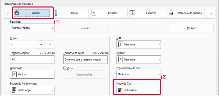 Alle sidene skrives ut i farger. Både fargedata og svart-hvitt-data skrives ut med Y (gul), M (magenta), C (cyan) og Bk (svart) toner. |