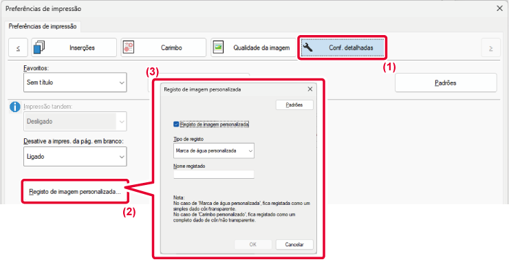 Når [Egendefinert stempel] er valgt under "Registrert type", registreres