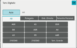 Trykk på [Skannestørelse]-tasten, etterfulgt av [Egendef.format]-fanen.