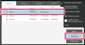 Naciśnij zadanie, które chcesz zatrzymać lub skasować, a następnie naciśnij [Zatrzymaj/skasuj] na panelu sterowania.