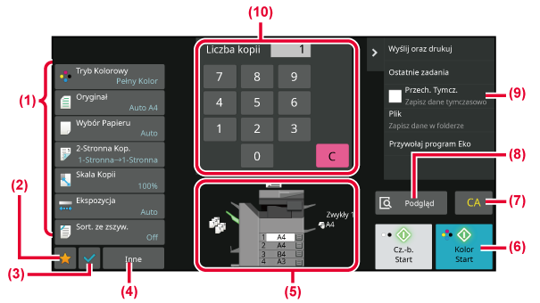 Umożliwia wprowadzenie liczby kopii.