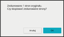 Wyświetlona liczba jest liczbą zeskanowanych arkuszy oryginału, a nie liczbą zeskanowanych stron oryginału. Na przykład, w przypadku kopiowania dwustronnego z wykorzystaniem jednego oryginału pojawi się liczba "1", wskazując, że zeskanowano jeden arkusz oryginału, a nie "2", co miałoby oznaczać zeskanowanie strony przedniej i tylnej.