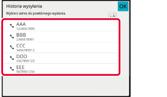 Naciśnij przycisk odbiorcy faksu, którego chcesz wybrać ponownie.