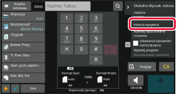 Na ekranie podstawowym lub ekranie książki adresowej naciśnij opcję [Historia wysyłania] na panelu zadań.
