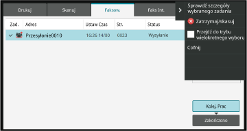 zostanie lista zadań. W celu sprawdzenia statusu zadania faksu należy