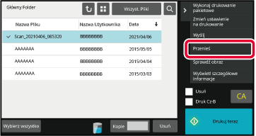 Naciśnij przycisk folderu, do którego chcesz przenieść plik.