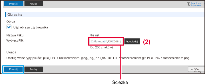 Wybierz opcję "Użyj obrazu użytkownika", a następnie kliknij przycisk [Przeglądaj], aby wybrać żądany obraz.