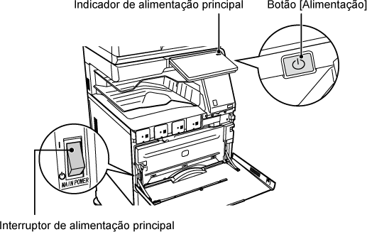 tanto a tecla [Ligar] como o interruptor de corrente principal,