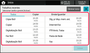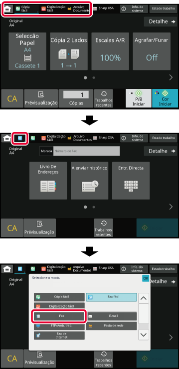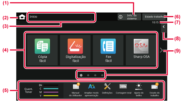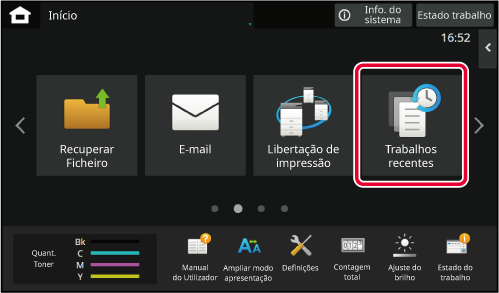 Premir a tecla [Ecrã Inicial] apresenta o ecrã inicial