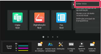 Abrir o painel de ação no ecrã inicial e premir [Editar Início].