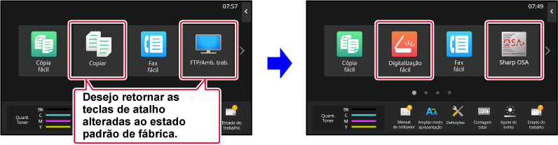 As definições serão guardadas na máquina e aplicadas.É possível alterar as teclas fixas. Estas