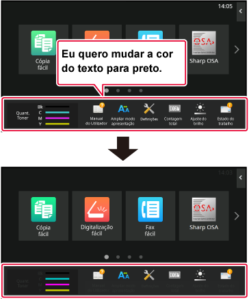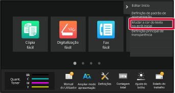 Abrir o painel de ação no ecrã inicial e premir [Mudar a cor do texto no ecrã inicial].
