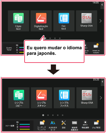 Premir a tecla [Definição de idioma] no ecrã inicial.