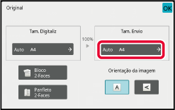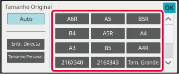Depois de selecionar a tecla do tamanho do original, toque na tecla